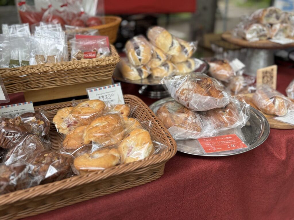 関西風たまごサンドがありました。玉子焼きをマスタードをアクセントにサンドされていました。手作りのシュシュも販売していました。