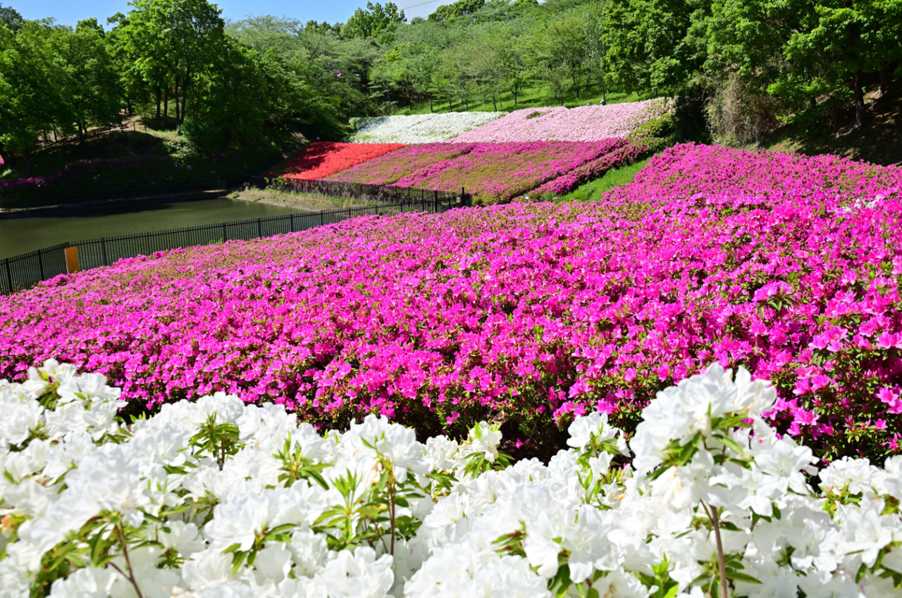 神奈川県最大級のツツジの名所「あつぎつつじの丘公園」は、約5万2千本のツツジが植えられており、例年4月下旬から5月上旬に開花します。