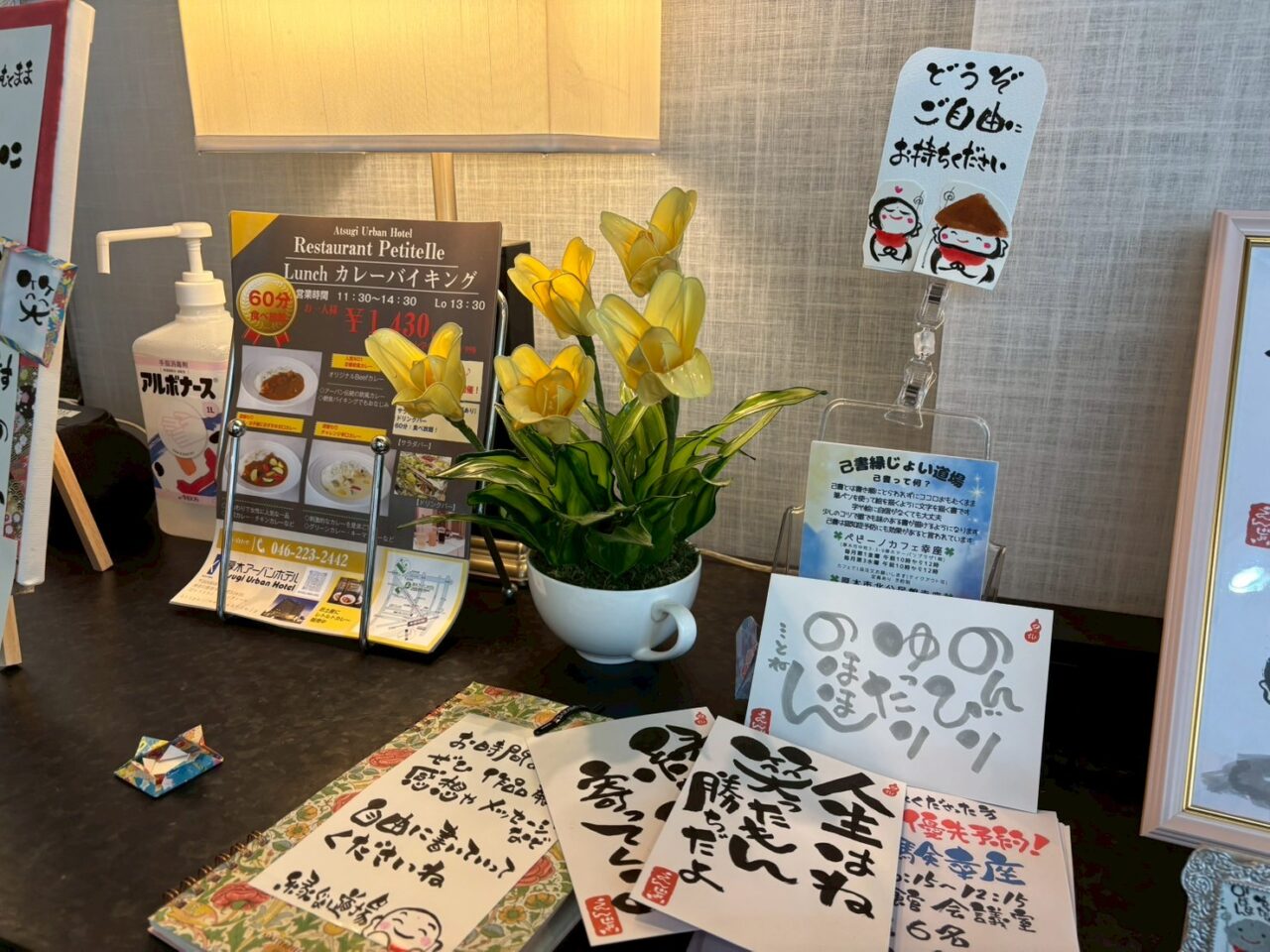 【厚木市】4月20日(日)~26日(土)厚木アーバンホテルラウンジにて 己書縁じょい道場作品展を開催中!ぜひご覧ください。