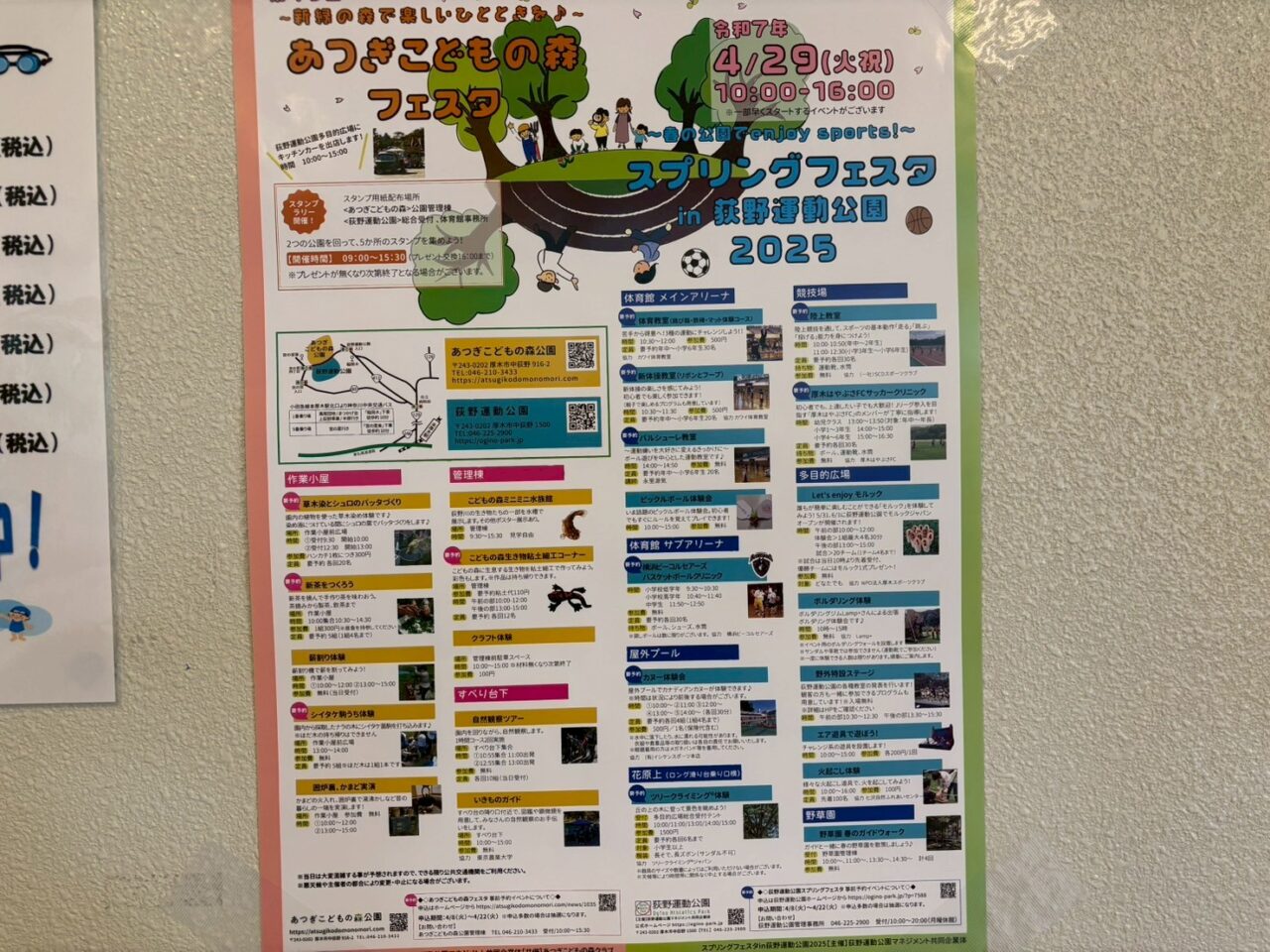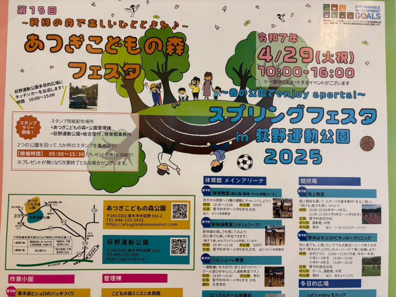2025年4月29日(火・祝日)に「荻野運動公園」では、 『スプリングフェスタin荻野運動公園2025』を開催し、向かいにある「あつぎこどもの森公園」では『第15回あつぎこどもの森フェスタ』を開催します。