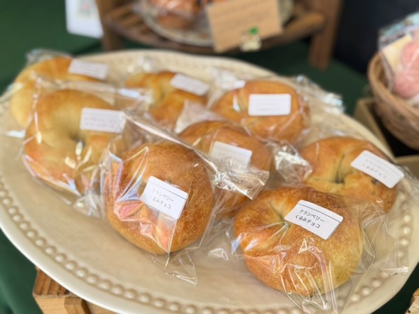 焼き菓子の他に、クランベリーくるみチョコのベーグルもあります。