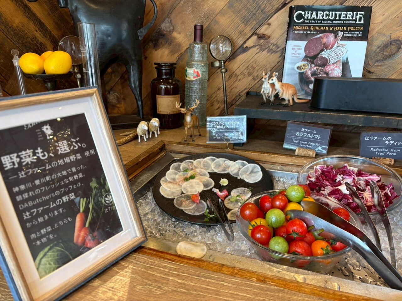 平日でお得なカジュアルランチブッフェに行ってきました。ランチブッフェの内容は、色とりどりの新鮮お野菜が嬉しい! DA Butchersのブッフェは、辻ファームの野菜が並んでいます。瑞々しく美味しいお野菜です。