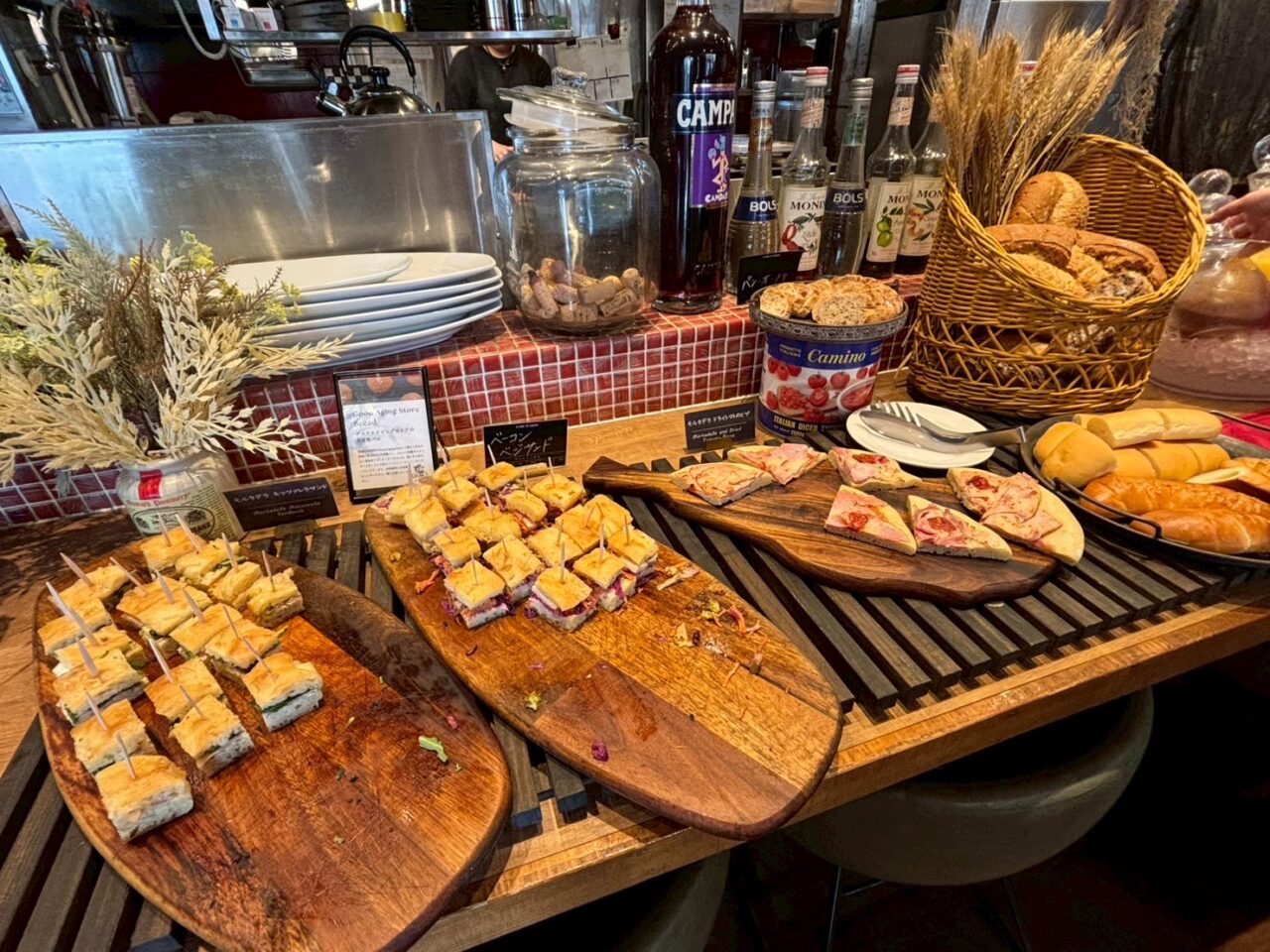 自家製パンを使ったサンドイッチやピザが一口サイズになっていて食べやすくなっています。