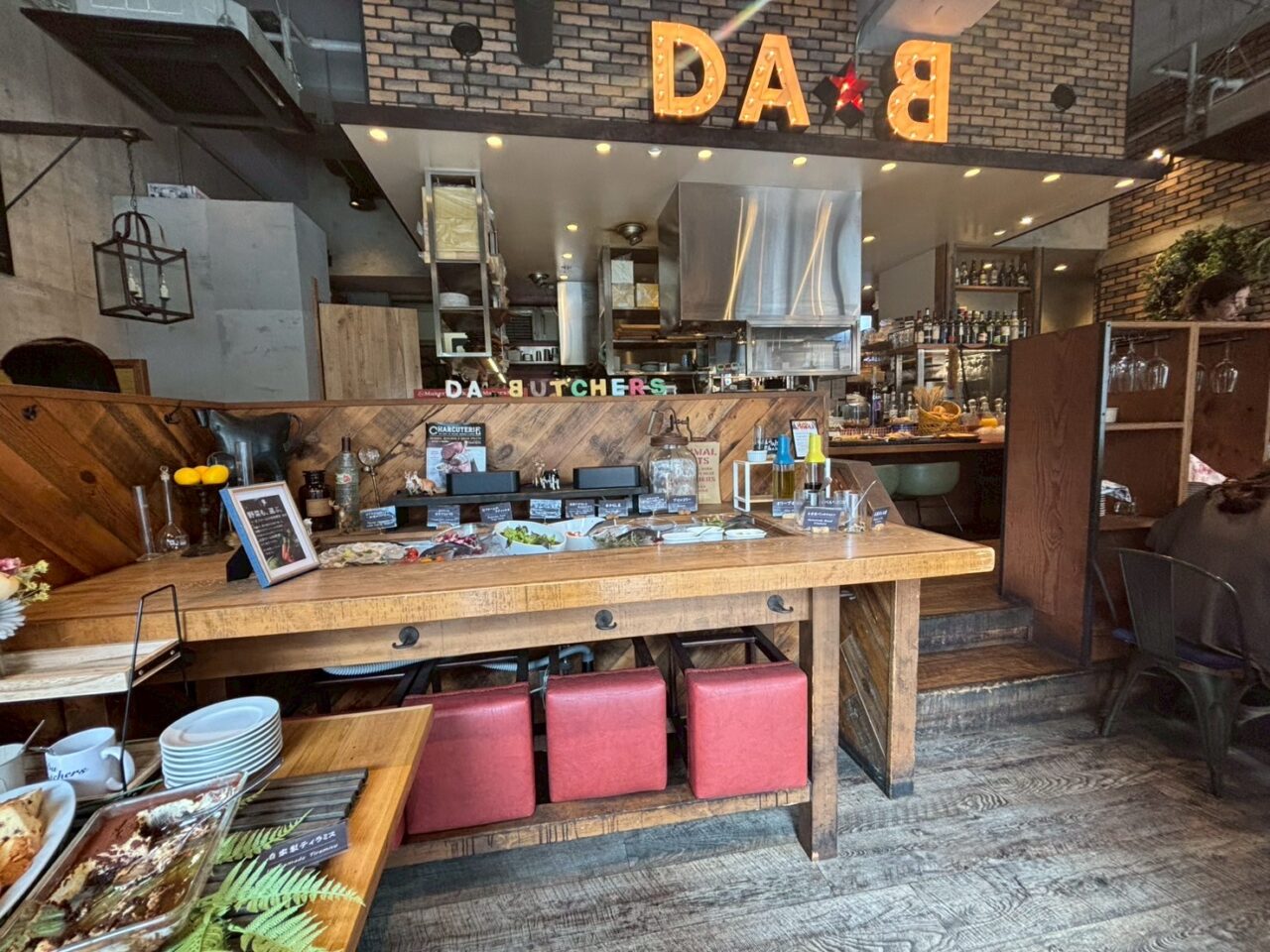 DA Butchers本厚木本店限定でランチブッフェを実施中です。メインは選べるお肉料理、シャルキュトリー/パン/野菜/温菜/デザート等約30種類の料理が食べ放題とソフトドリンク飲み放題です。