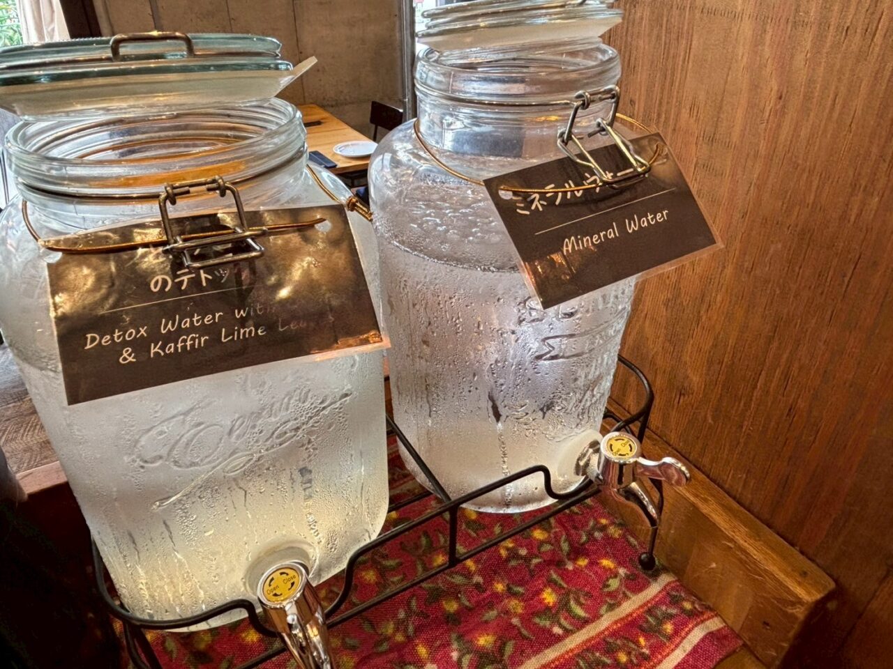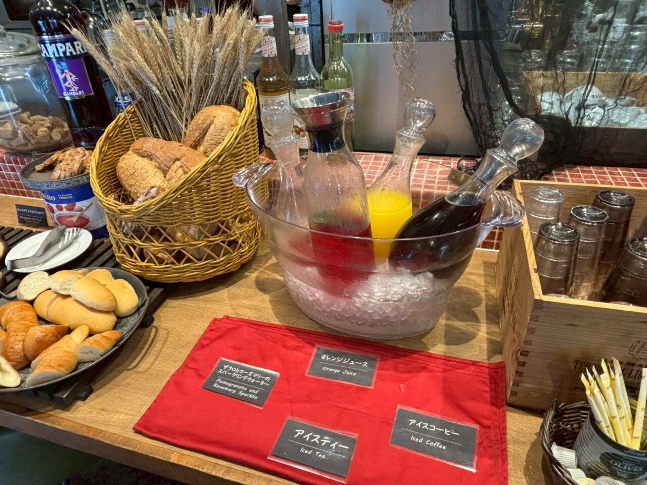ドリンクは、アイスティー・アイスコーヒー・オレンジジュース。ザクロとローズマリーのスパークリングウォーターがあります。