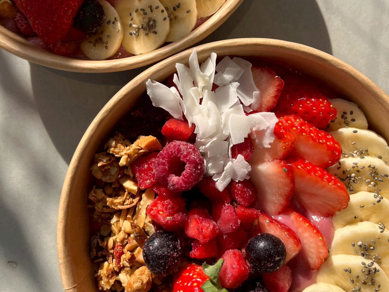 ②マルシェ出店商品:アサイースムージーボウル、Deli Box(ヘルシー弁当)など