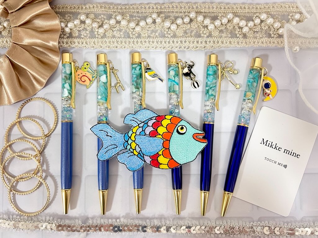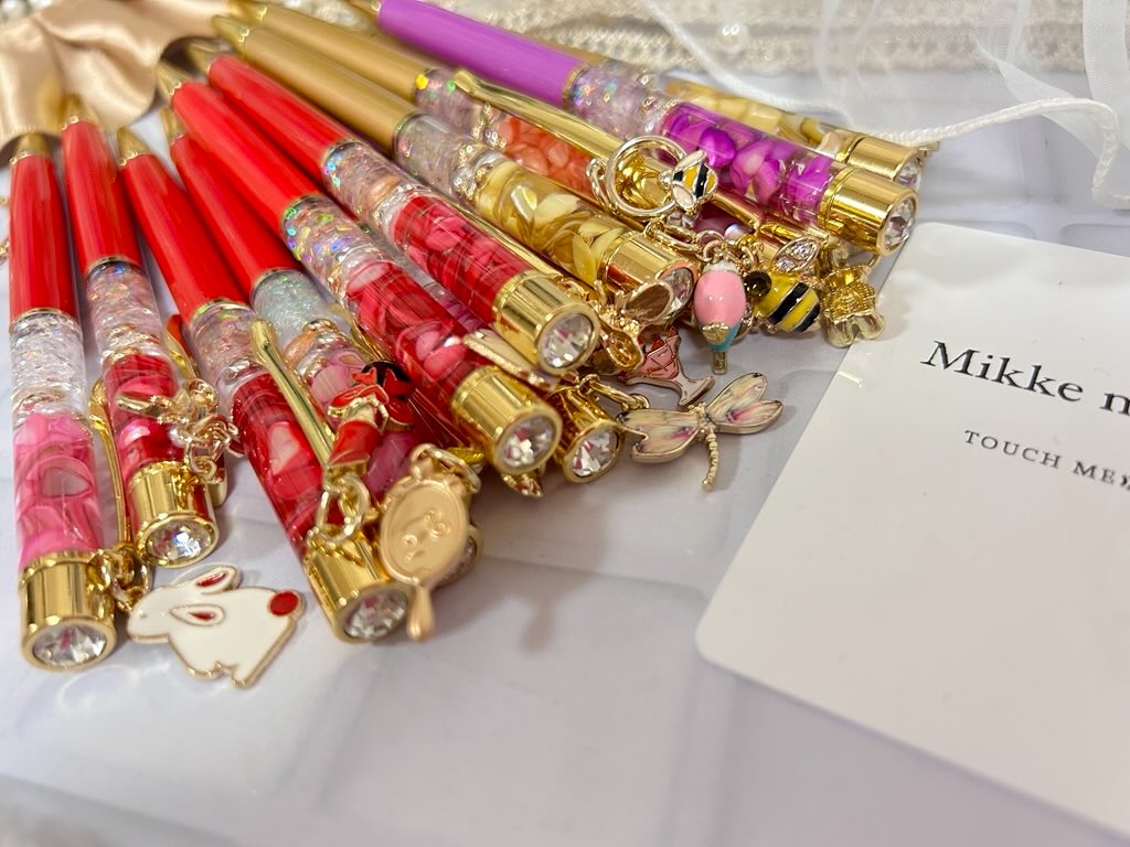 こちらは、改良版レジンボールペンです。チャームも可愛いし、色合いもすべて違うので、いっぱい見て、自分にとってのとびきりかわいいボールペンを見つけてみてくださいね。