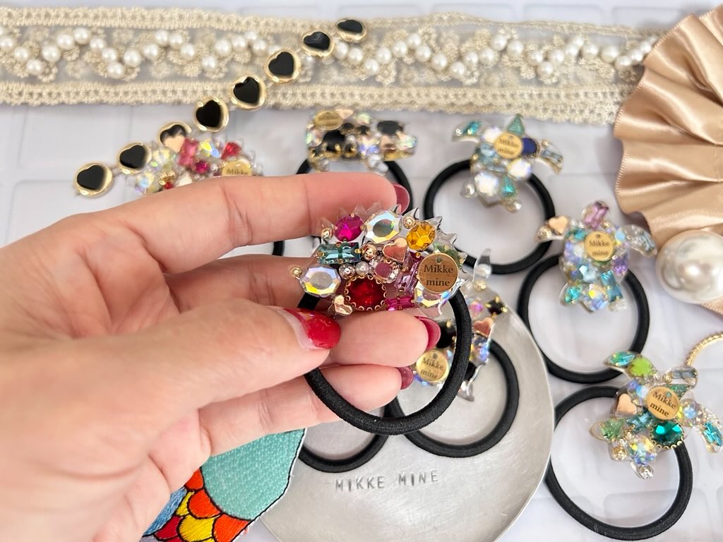 当日販売アイテムを店主より、教えていただきましたので、ご紹介します。こちらは、キラキラヘアゴムMikke mineのチャームが入っているのが嬉しいです。モチーフは、ウサギ、かめ、豚、ハリネズミがピカピカの仕上がり!そのヘアゴムを付ける日は特別な日になりますね。