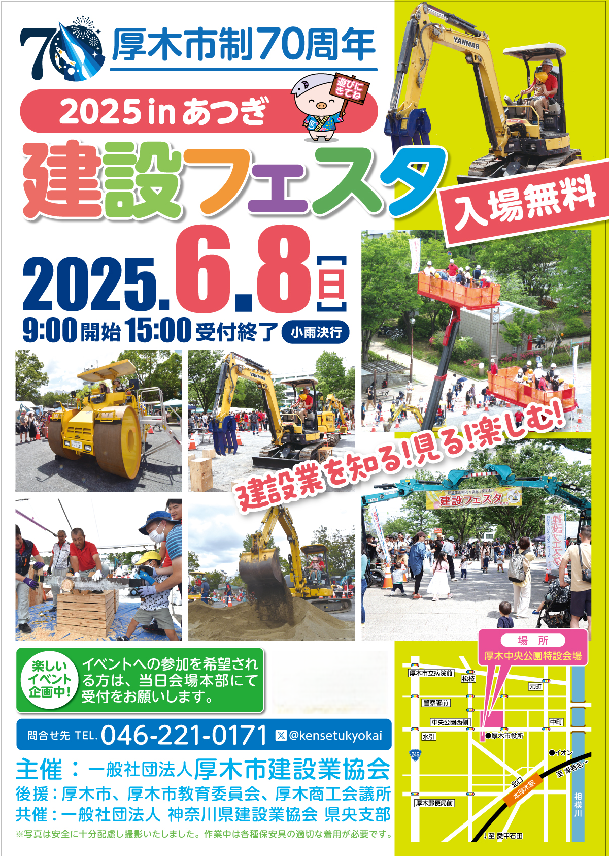 厚木中央公園で、2025年6月8日(日)建設フェスタ2025inあつぎを開催します。
