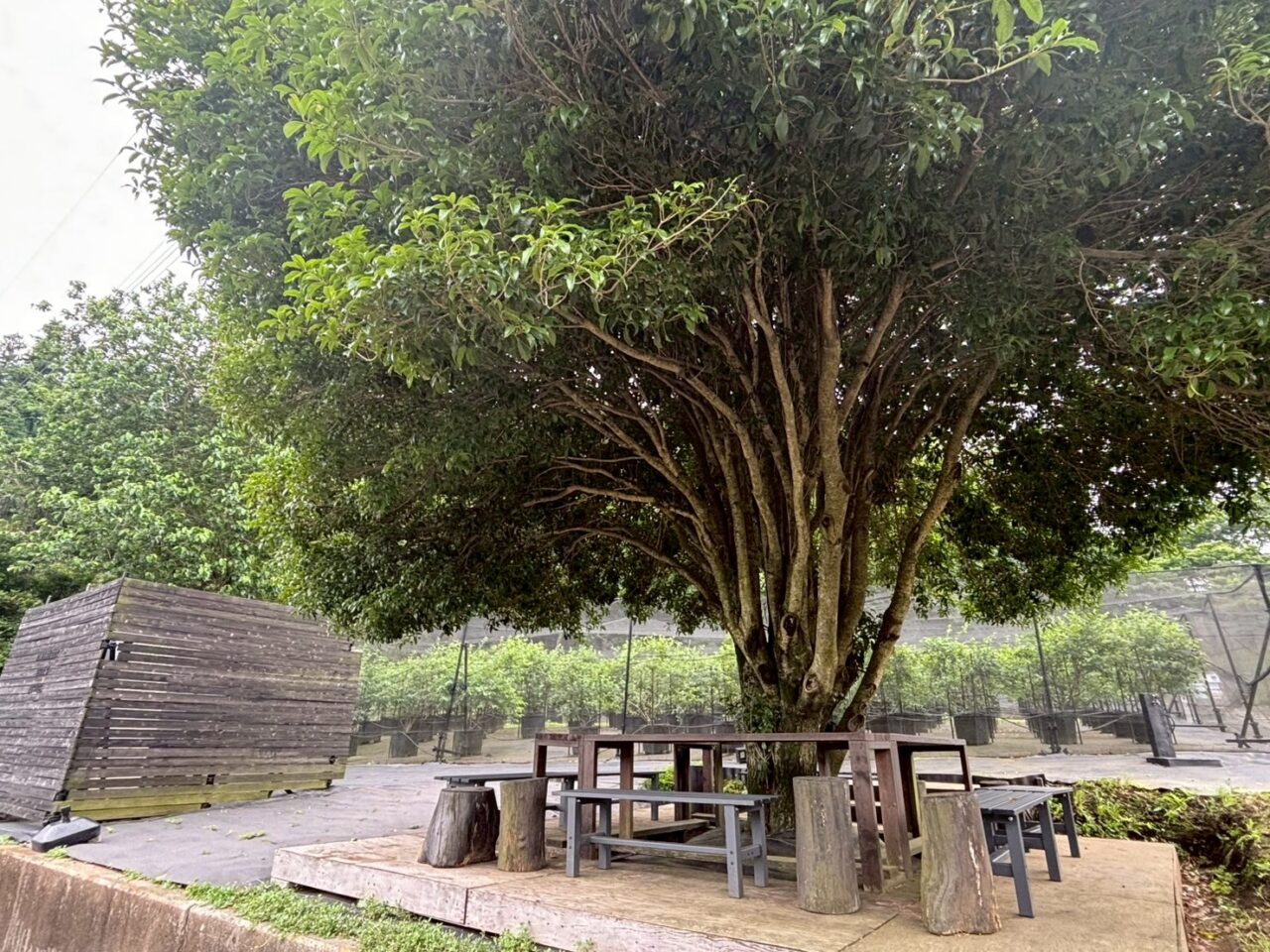 大きな樹の下のベンチで休みながら、ブルーベリー狩りを楽しみませんか?