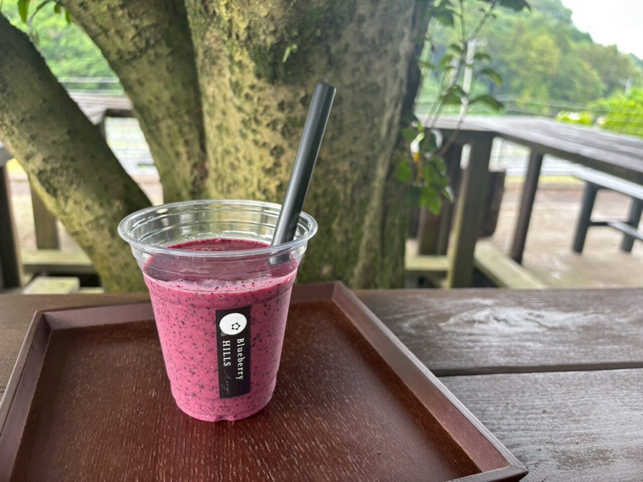 今年の新商品 「Blueberry SMOOTHIE(ブルーベリースムージー)」660円(税込)が登場しました! こちらは、収穫カゴを手に、お好みのブルーベリーを摘んだら、スタッフがその場でスムージーに仕上げます。