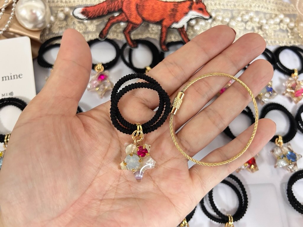 こちらの星形ヘアゴムには、切れたらキーホルダーに使えるようにワイヤー付きです。2度楽しめるアイテムです。