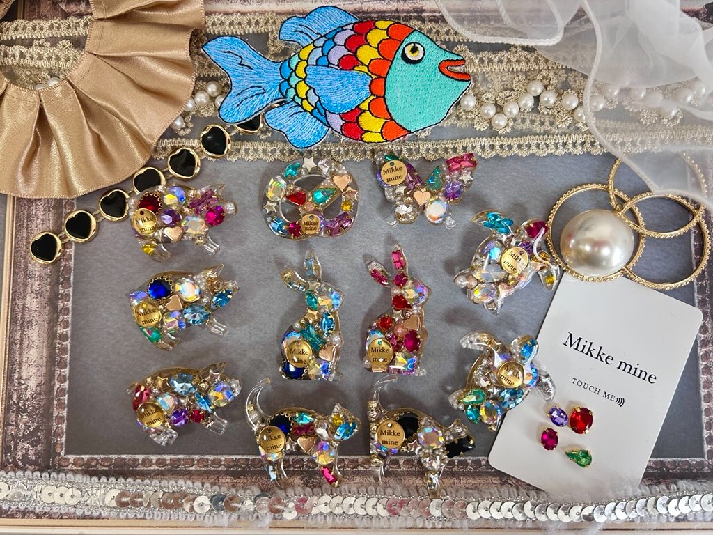 どれも、1点ものの店主がひとつひとつ丁寧に真剣に作成しているアイテムが並びます。どれも豪華でかわいくて、身に着けたくなるものばかり。6月14日地下マルシェのMikke mineのブースに立ち寄ってみてください。きっと可愛すぎて悶絶します。