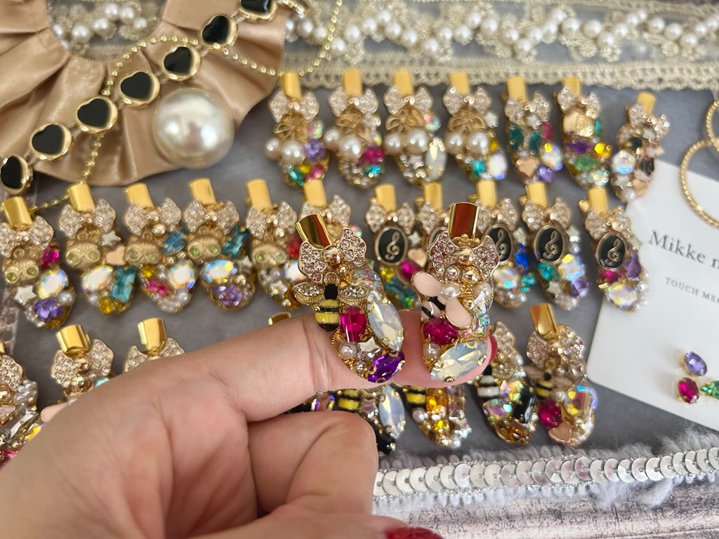 こちらは、大人気のモチーフ付きミニヘアクリップ。洋服やヘアアクセサリー、カバンにもつけられて、モチーフには、蜂、うさぎ、馬、猫、蝶々などと組み合わせてどこにも売られていないような、可愛らしさに溢れています。