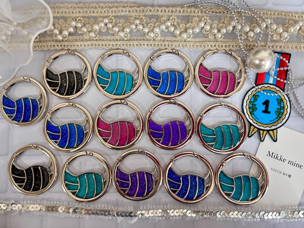 Mikke mineが、今回のあつぎ地下マルシェに向けて猛ダッシュで製作した新作を販売します。販売アイテムには、モチーフ付きミニヘアクリップ、豪華バッグチャームや、キラキラヘアゴム、キラキラブローチ、スマホショルダー、ネックレス、バレーボールカラビナ、野球カラビナ、ピアスがあります。