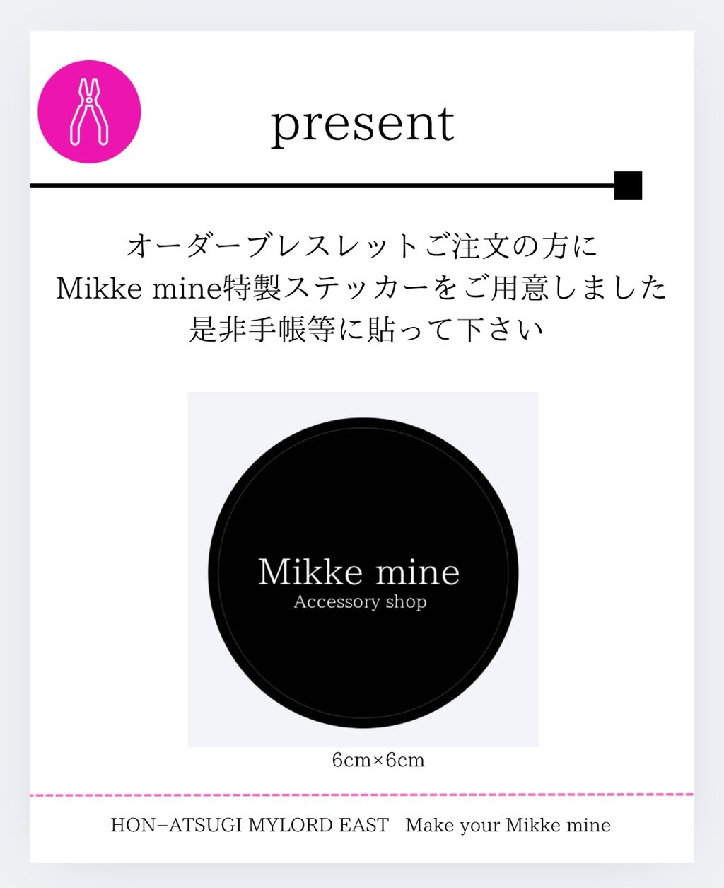 オーダーブレスレットご注文の方に、Mikke mine特製ステッカーのプレゼントがあります。