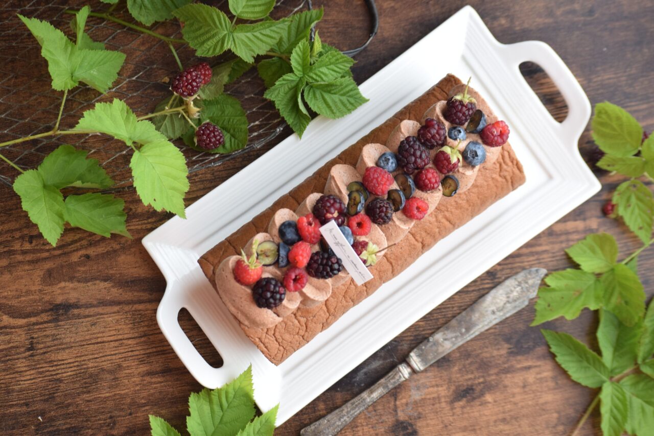 工房菓野香のお庭のベリーをふんだんに使った、お庭ベリーのショコラロールの販売があります。
