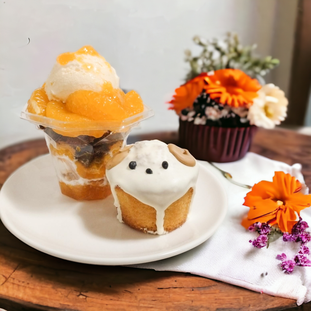 ◆米粉の動物さんマドレーヌとオレンジのミニパフェ
