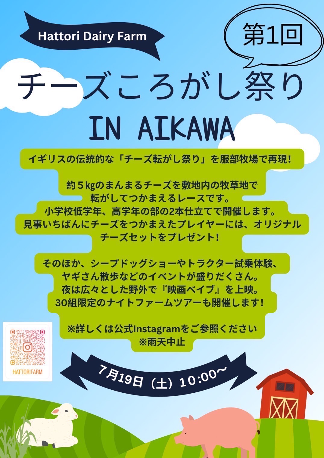【厚木市周辺】服部牧場 初開催 第1回「チーズ転がし祭り」7月19日(土)に開催!夜は初のナイトシネマ上映会が開催されます。
