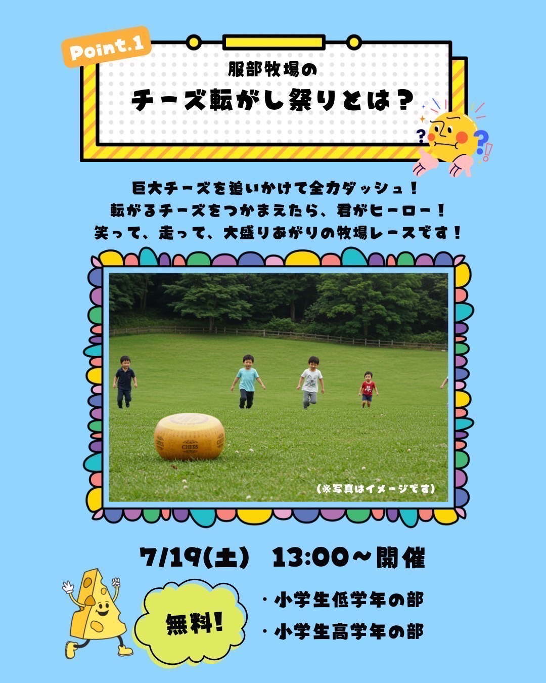 イギリスの伝統イベントを服部牧場で開催します!転がる巨大チーズを追いかけて全力ダッシュ!見事つかまえた方には懸賞をプレゼント。記念すべき第1回目に、ぜひ参加しませんか?