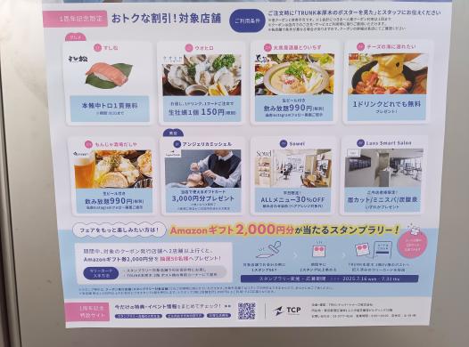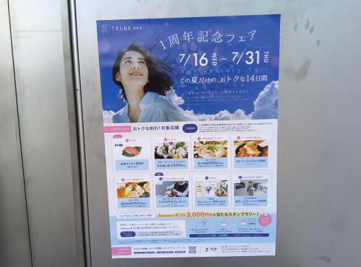 【厚木市】駅前のオアシス「TRUNK本厚木」が7月16日より1周年記念フェア開催!クーポン配布やギフトプレゼントがありますよ。