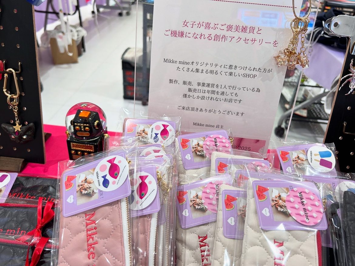 創作アクセサリーと雑貨のお店「Mikke mine(ミッケマイン)」が、あつぎ鮎まつりの夏出店から、興奮冷めやらぬうちに、1日限定で2025年8月18日(月)本厚木ミロード①地下食品フロア京樽様横スペースにて出店します。