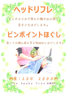 ~ 部位別のピンポイント揉みほぐし or ヘッドリフレコース ~20分2,000円