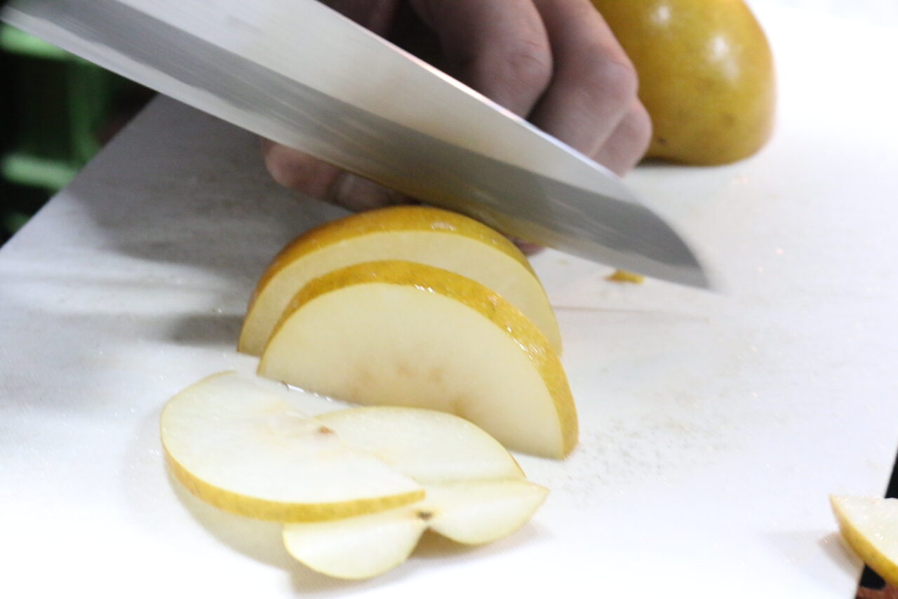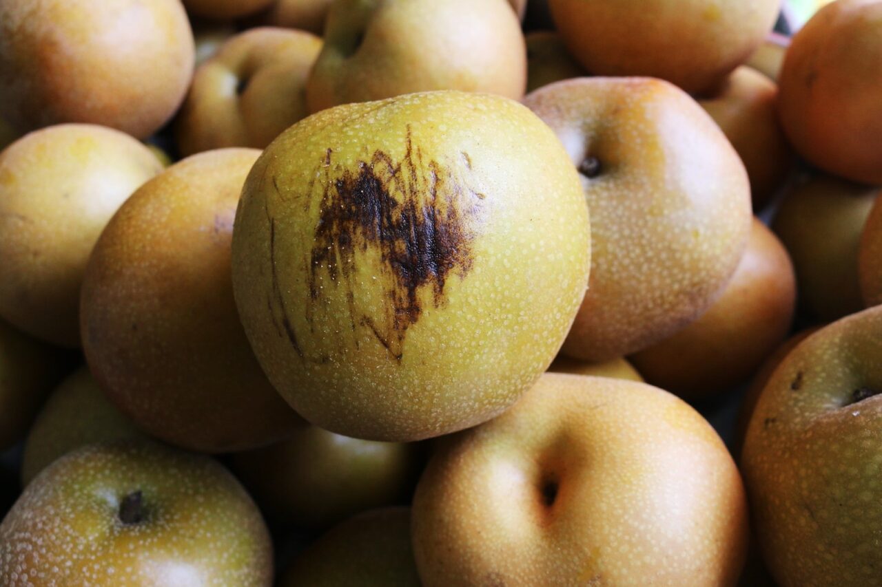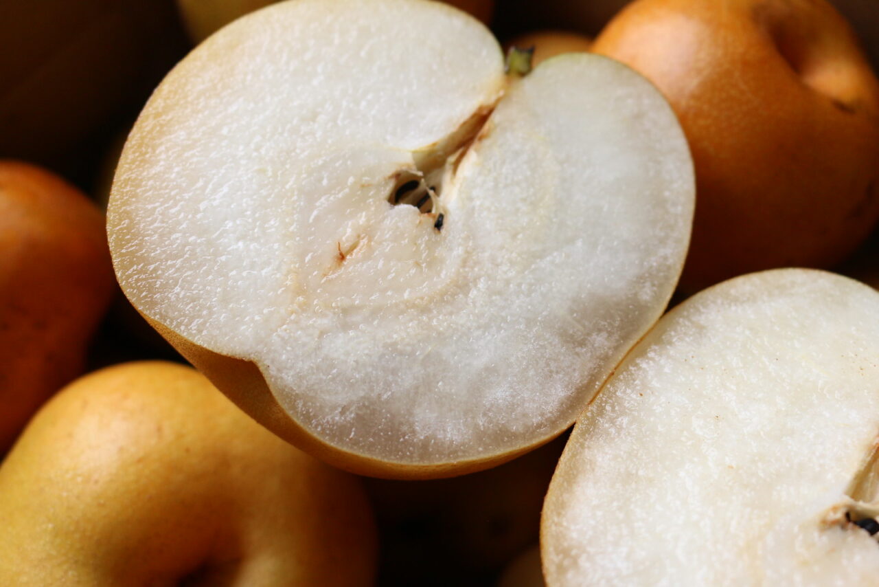 近年、猛暑の影響で多くの梨農家が“蜜症”に悩まされています。蜜症は天候不順などで果実内の糖分が偏って透明化してしまう現象です。リンゴにあると喜ばれる蜜ですが、梨に発生すると特有の食感が失われるため一般販売はできません。