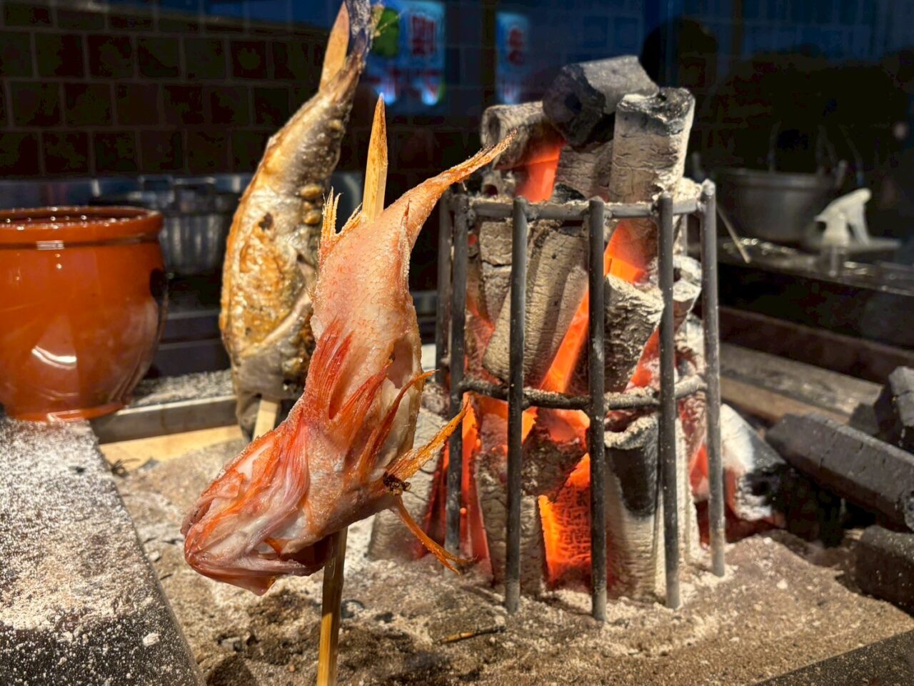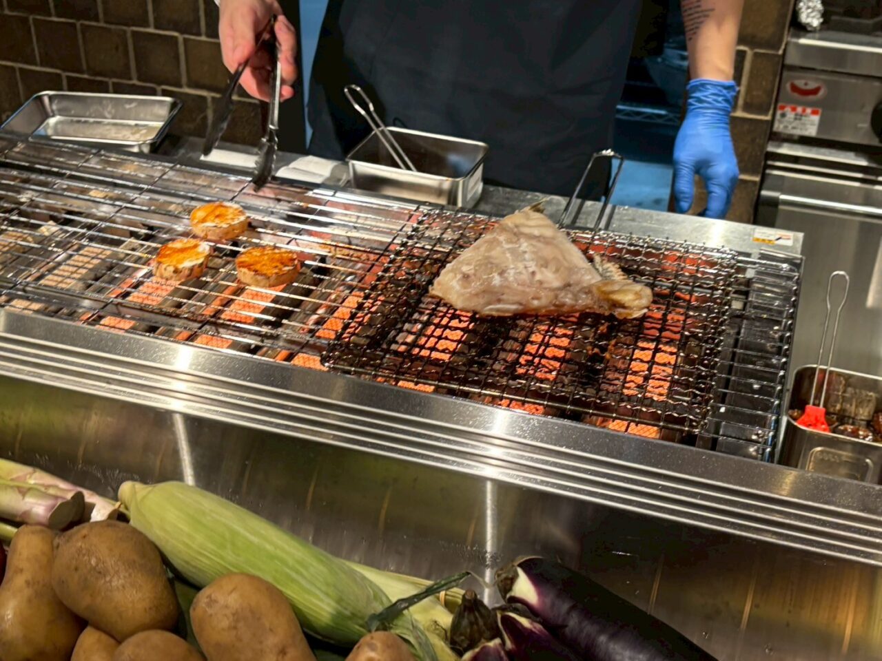 炉端で焼いている様子を間近で楽しめます。食材をじっくりと炭火で焼いて旨味が凝縮した炉端焼きは最高です。