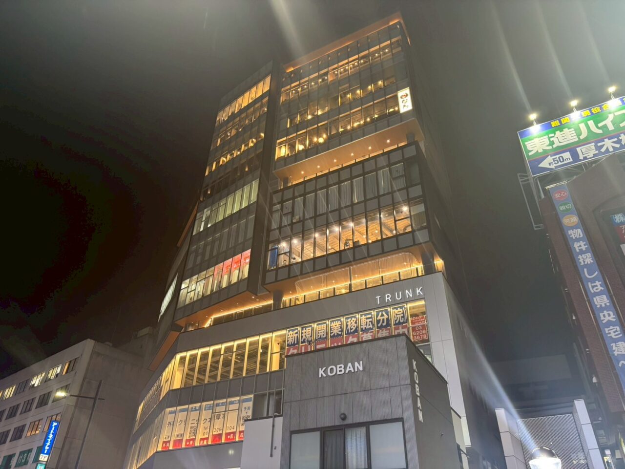 場所は、TRUNK本厚木9Fです。TRUNK本厚木内には、同じ系列のお店が入っています。11階にある「個室居酒屋 天日」と12階にある「海鮮個室居酒屋 二ノ宮」です。