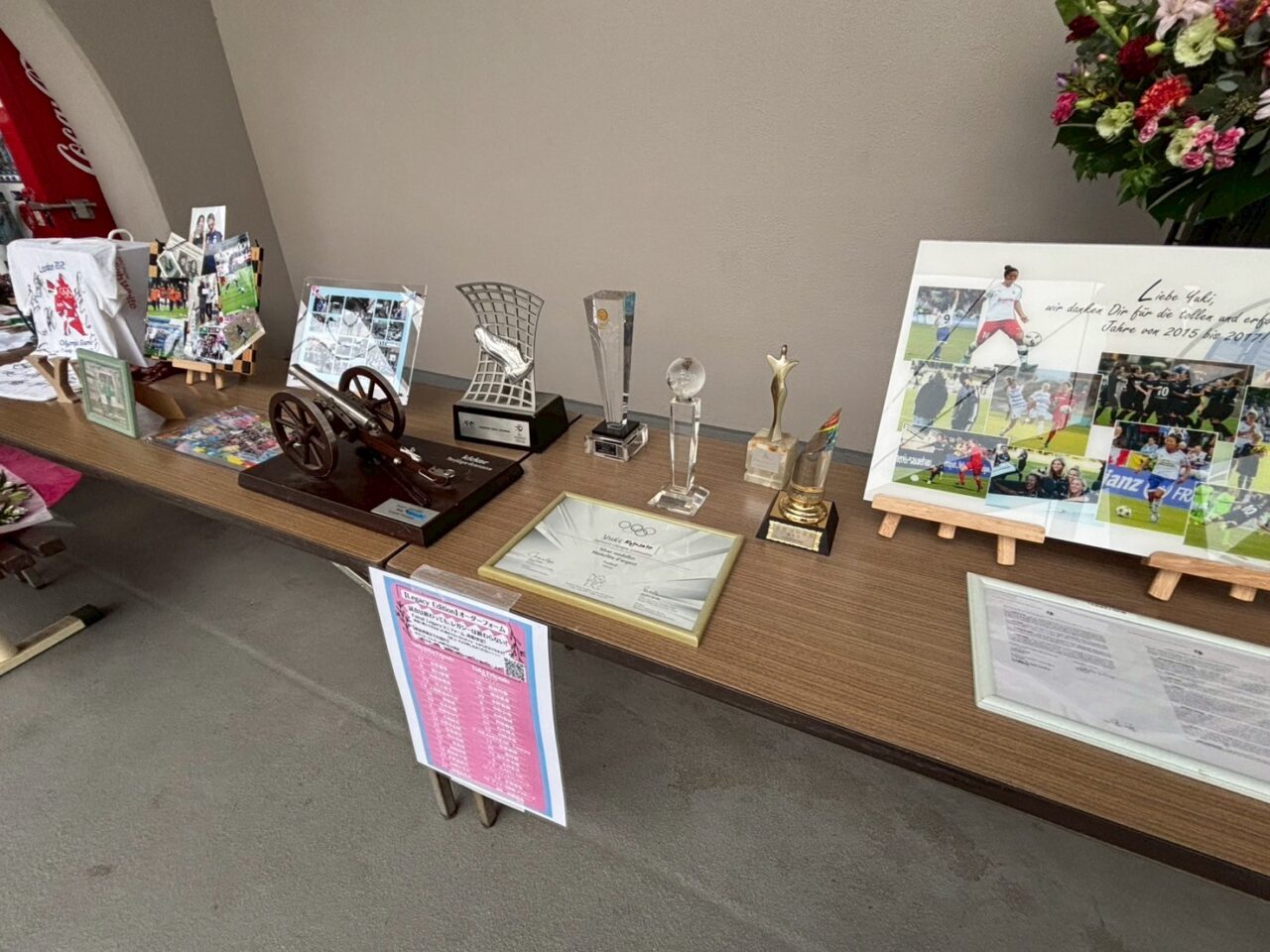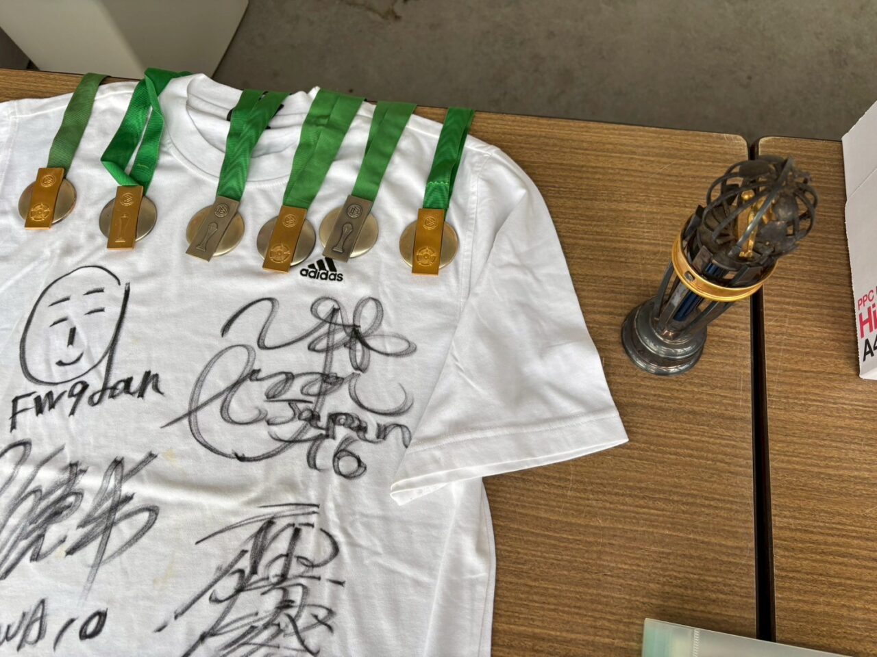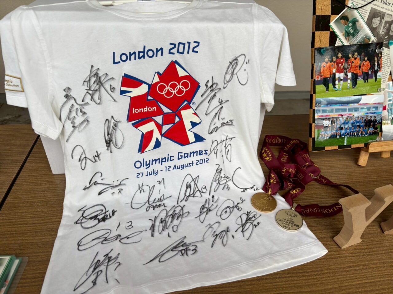 陸上競技場の周りでは、現役時代数多く獲得したメダルやトロフィーが飾られていました。2011年の2011 FIFA女子ワールドカップのもの。
