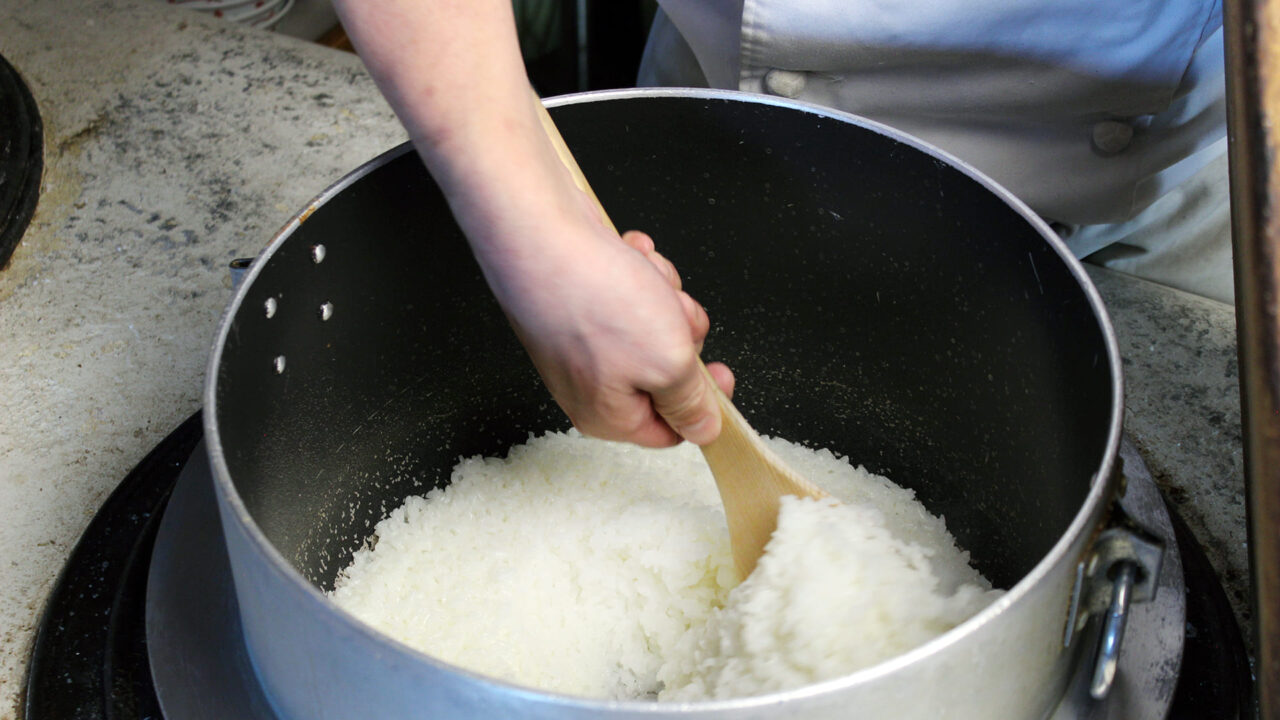 こちらは、熟成180gロースかつ膳(税込2,079円)です。「厚切りとんかつ よし平」では、ご膳メニューをご注文いただくと、 「大かまどごはん」「味噌汁」「キャベツ」「お漬物」すべておかわり無料! 店内の大きな釜で炊き上げる「大かまどごはん」は、 「新潟県産コシヒカリ」、「十穀米」、「月替り炊込み」の3種類からお選びいただけます。