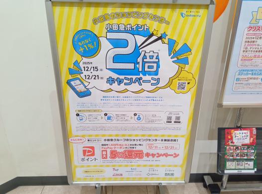 【厚木市】小田急ポイントアプリ限定 小田急ポイント2倍キャンペーン12/15~21まで