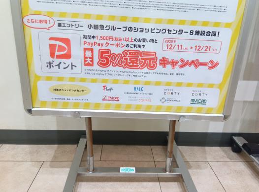 2つのキャンペーン開催時に、事前エントリー済みのPayPay決済と小田急ポイントアプリのご提示の両方をご利用すると、7%(PayPayポイント5%+小田急ポイント2%)となります。