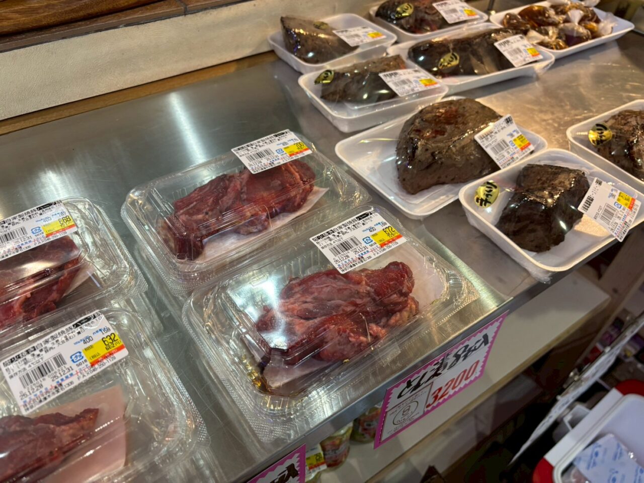 オーダー表にあるお肉を量り売りで販売しています。昔ながらの手法でじっくり熟成させ、一番美味しい状態を見極めて「手切り」で仕上げています。