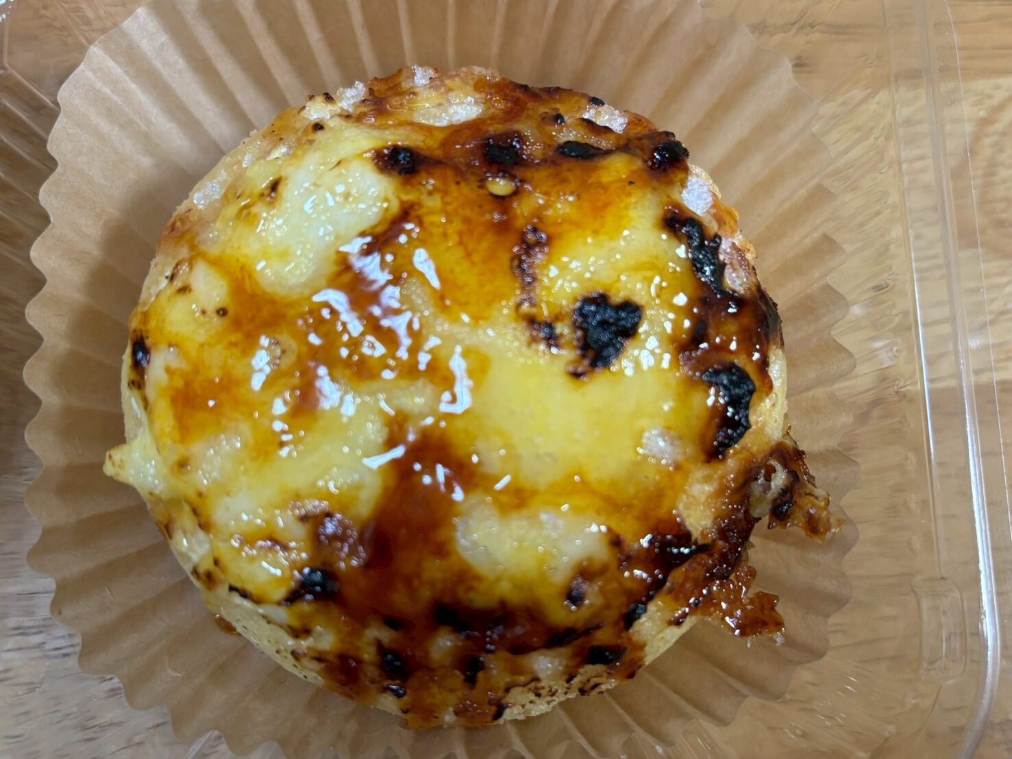 今回注文したのは、お店の方のおすすめの「レアチーズブリュレ」。表面はパリパリっと、割って食べるとレアチーズカスタードクリームがあふれ出ます。