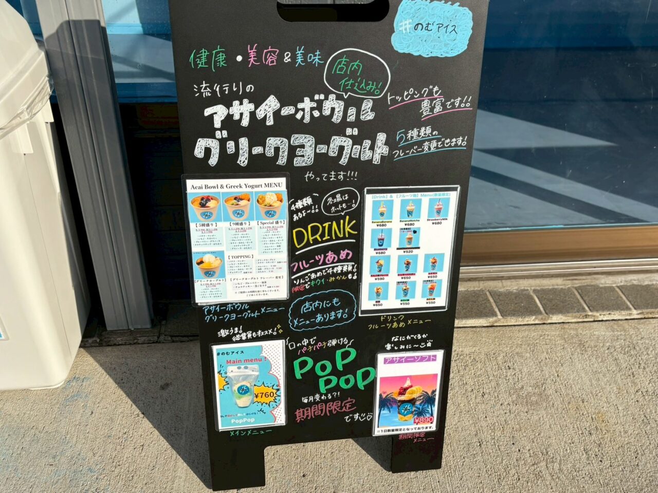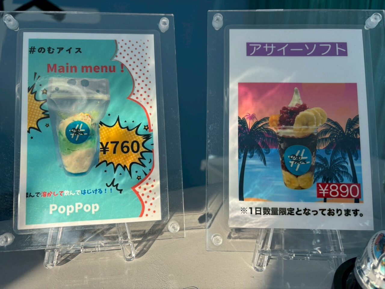 1日数量限定の「アサイーソフト(890円)」に、「PopPop」自家製特製クリームとアイスが合わさったパチパチ弾ける新食感アイスなど、ここでしか味わえない贅沢メニューもあります。