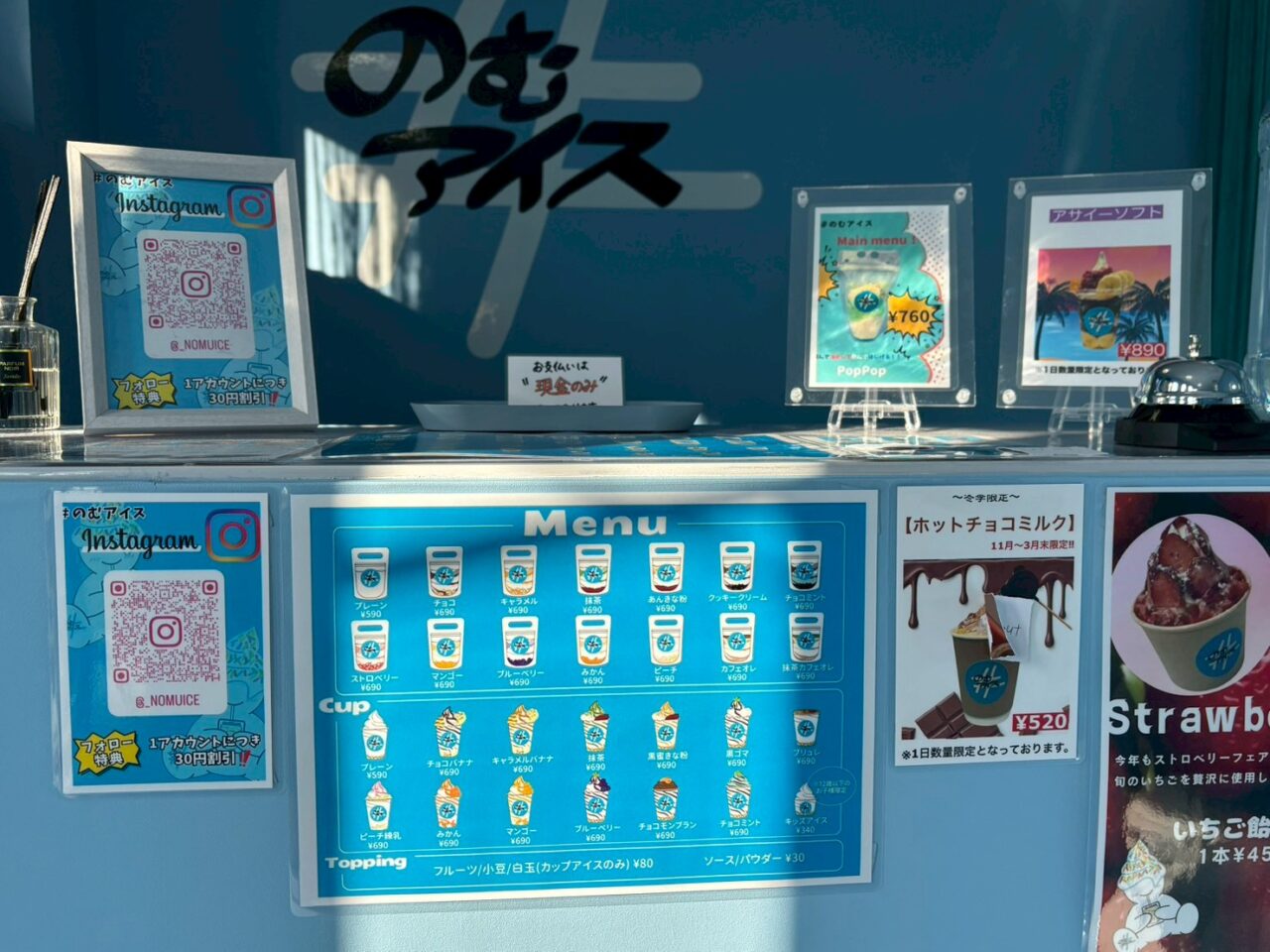 オーナーに営業時間を聞いたところ、こちらの店舗、なんと平日は夜19時から、深夜3時までの営業! お仕事帰りや、本厚木駅周辺で飲んだ後の「シメのアイス」として立ち寄るのにもぴったりな、厚木の新しい夜の顔になりそうです。