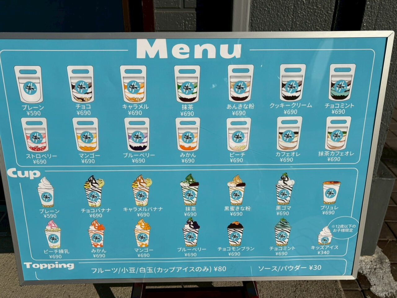 注文の仕方は、レジで、アイスのタイプを選びます。パウチに入ったタイプか、カップアイスにするか?あとは、味を選びます。トッピングもあります。