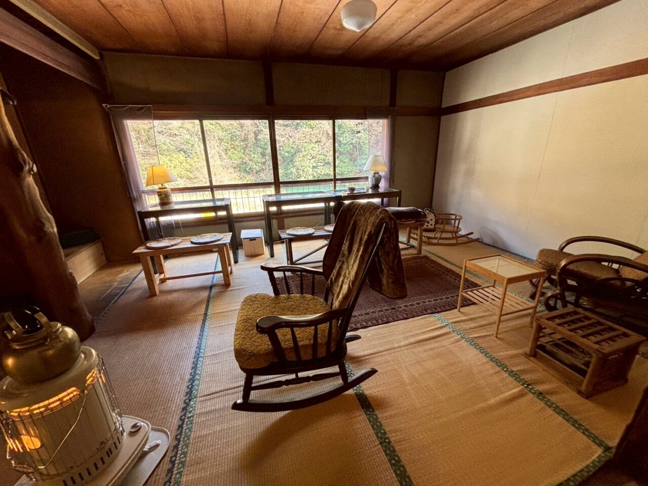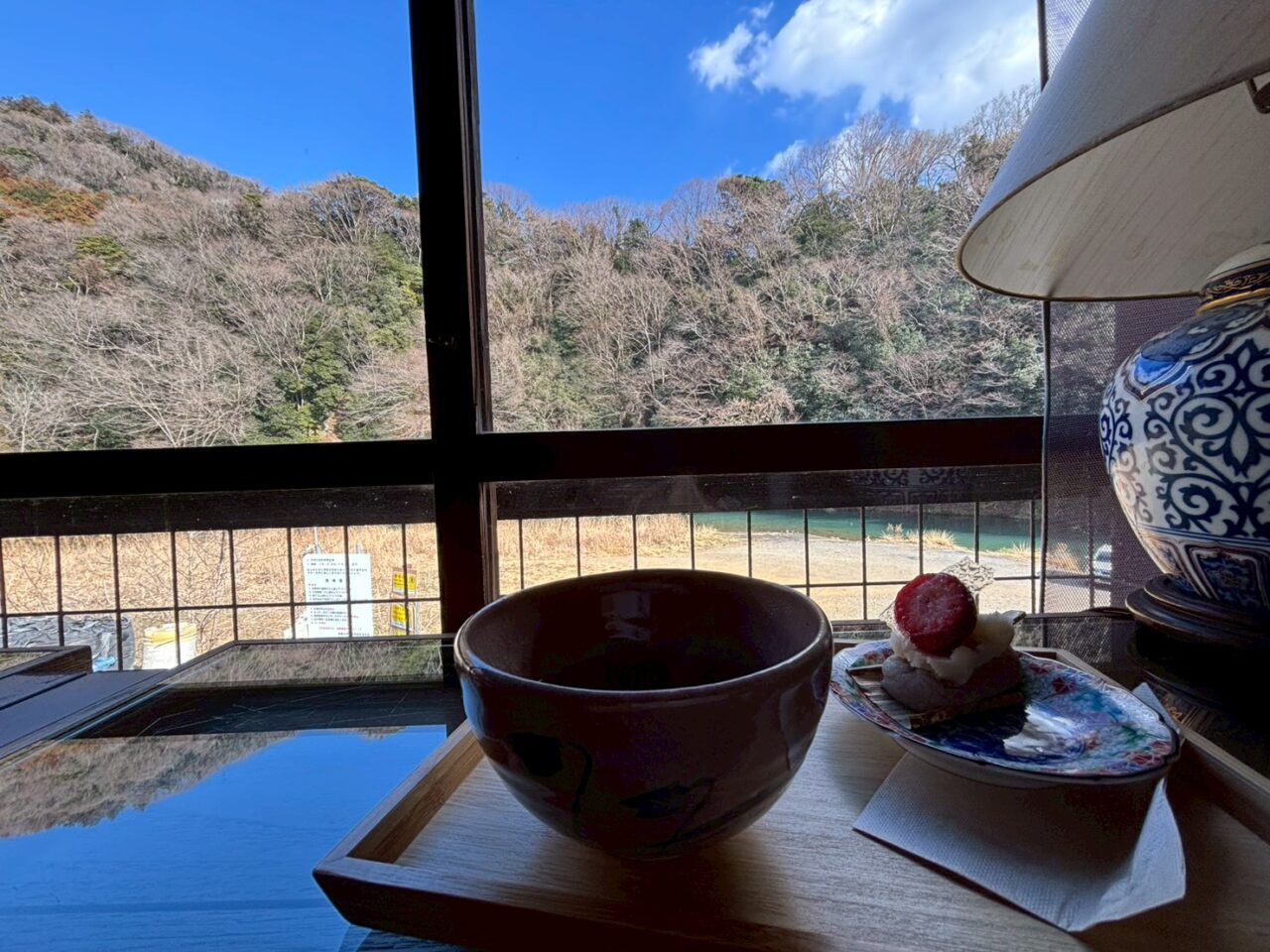 どこを切り取っても絵になる「インスタ映え」な内装です。今の季節は膝掛けを用意してくださる優しさが身に沁みます……。とはいえ、川沿いの古民家。おしゃれを楽しみつつ、しっかり温かい服装でお出かけするのが正解です!