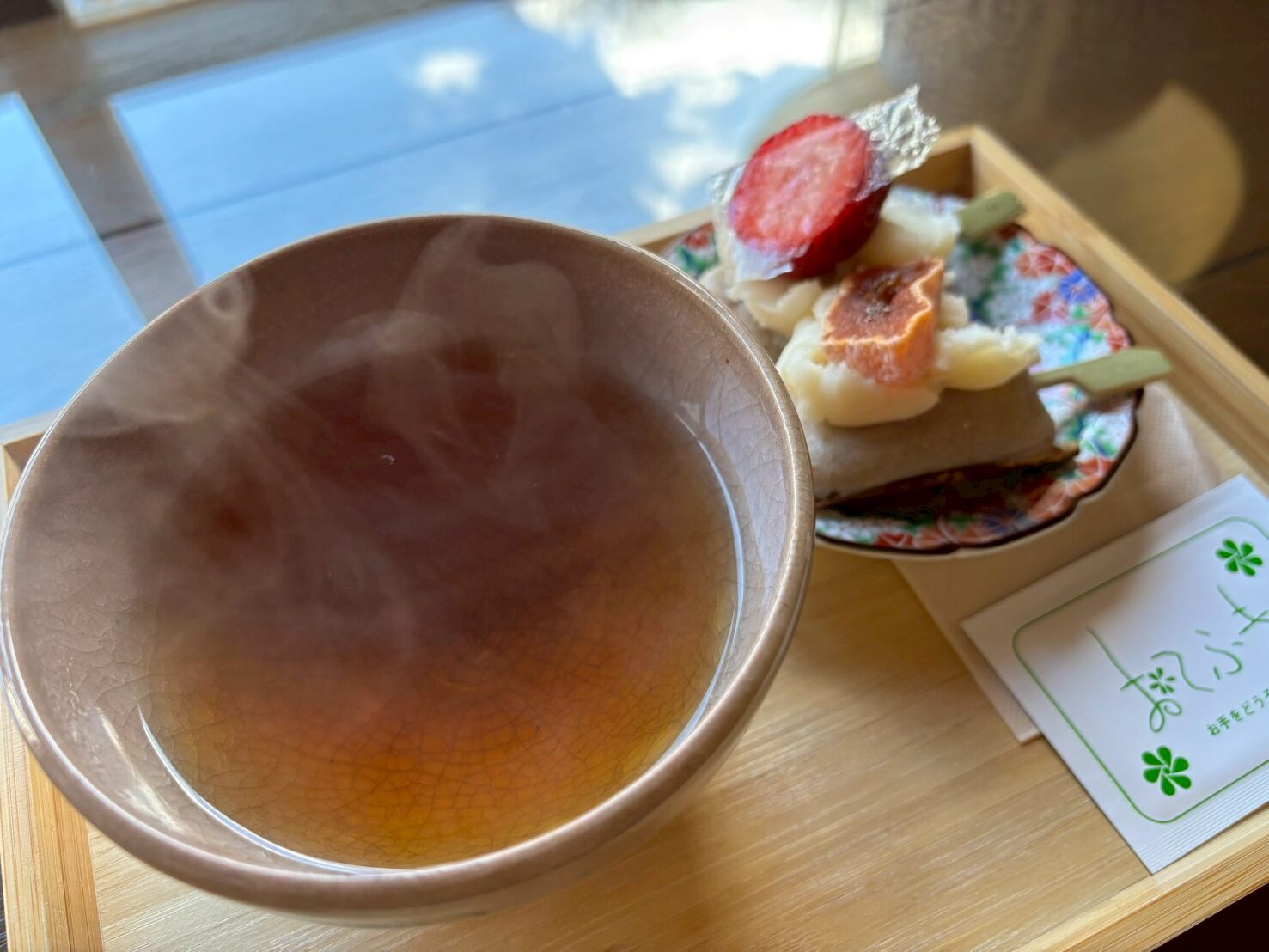 お団子と一緒にぜひ味わってほしいのが、店主こだわりの「萎凋茶」です。 「いちょう」といっても、街路樹のイチョウではありません。摘み取った茶葉をあえて少し萎れさせることで、花のような芳醇な香りを引き出す特別な製法のお茶なんです。