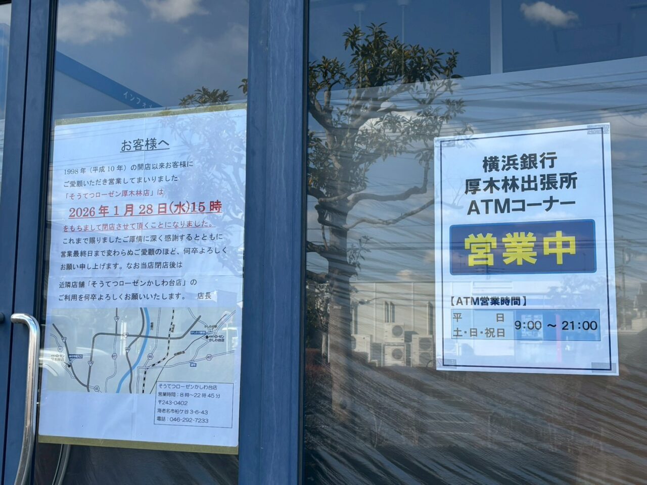【厚木市】サーティワンや花屋も…。そうてつローゼン厚木林店のテナント店舗が営業終了。建物内は横浜銀行ATMのみ稼働しています。