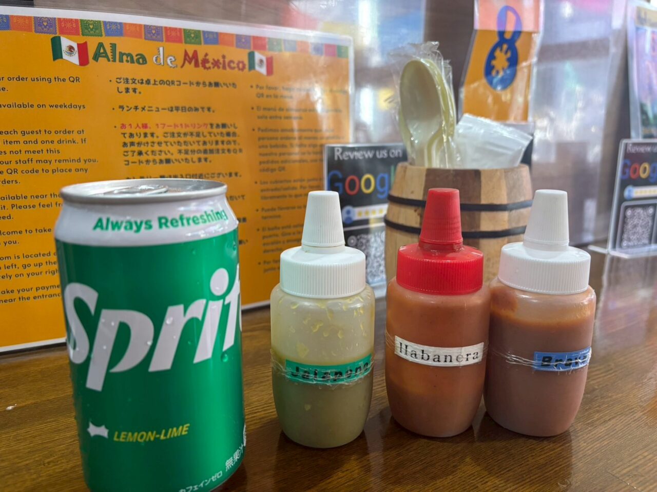 Jalapeño(ハラペーニョ): 緑色のソース。爽やかな辛みが特徴です。