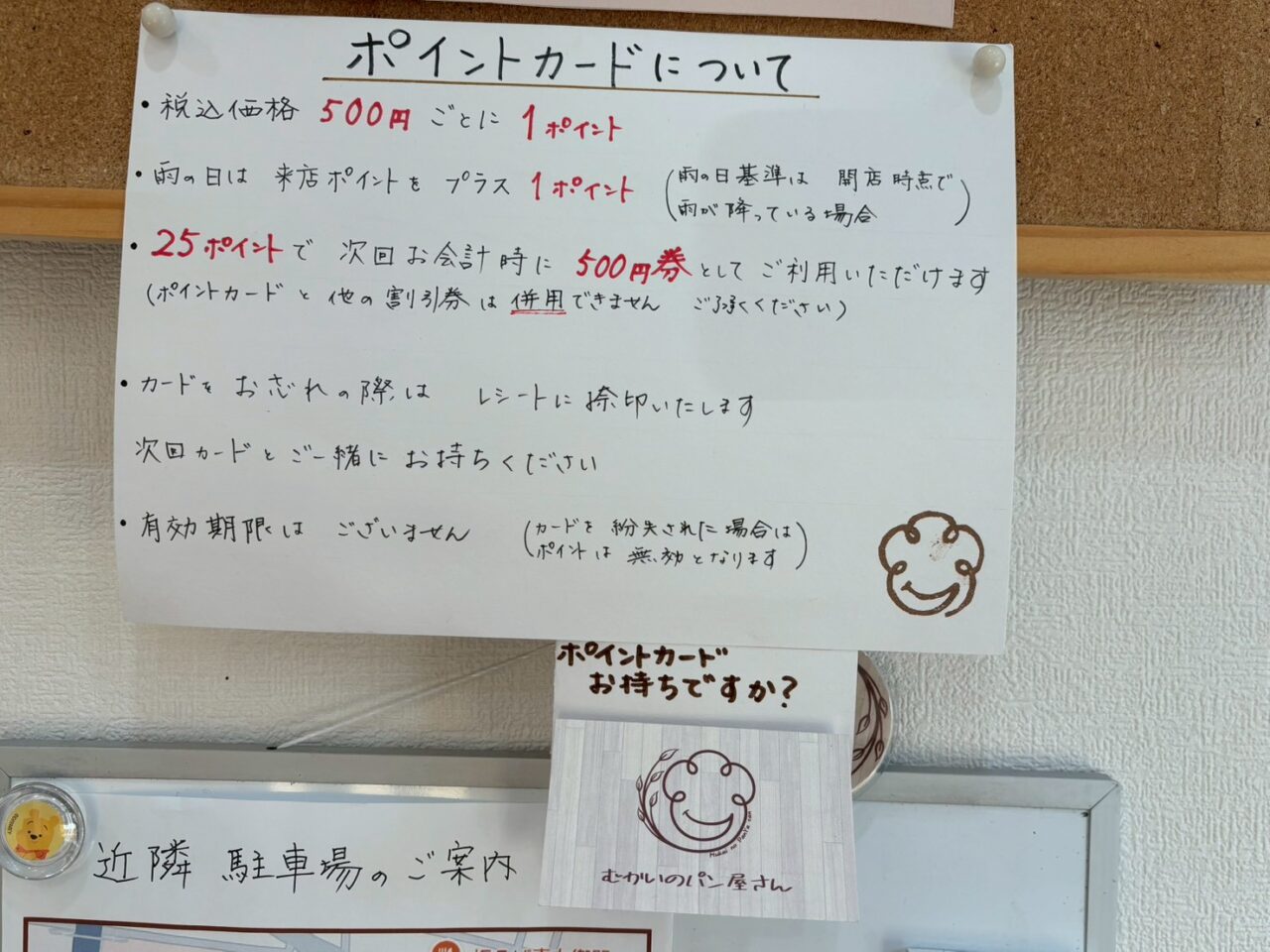 また、税込500円ごとに1ポイント貯まるカードは、25ポイントで500円券として利用可能。なんと、雨の日は来店ポイントがプラス1点という嬉しいサービスもあります!