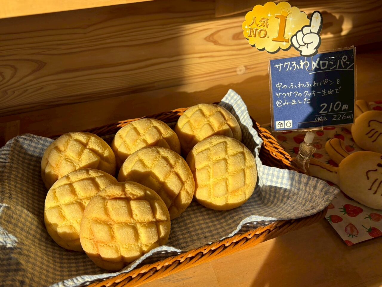 人気ナンバーワンのさくふわメロンパン。網目模様がしっかり刻まれたクッキー生地に中のふわふわパンが子どもにも大人にも好かれる味わいです。