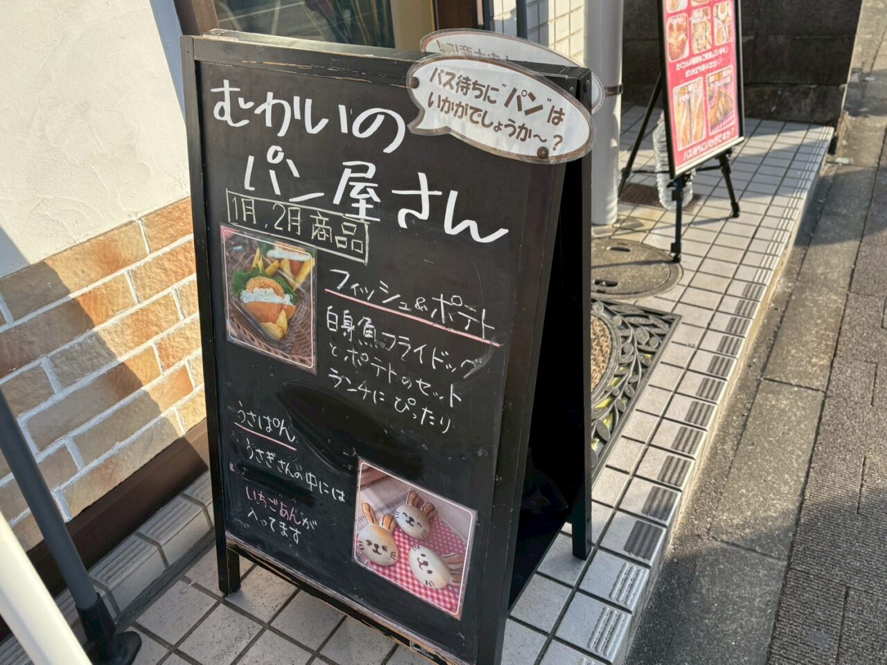 店頭のボードには、今しか出会えない魅力的なパンが紹介されています。