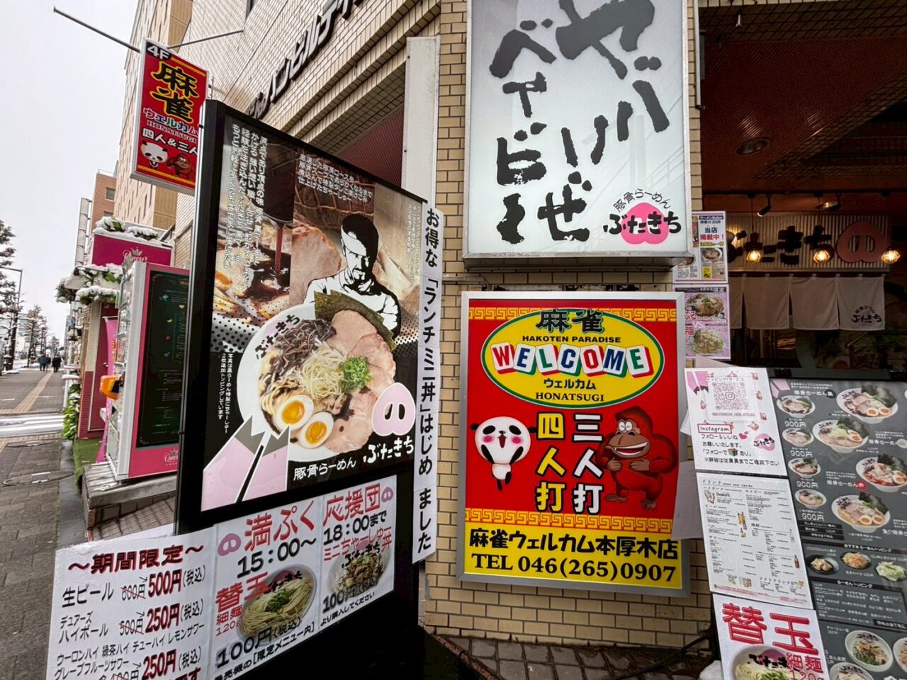 場所は、本厚木駅東口より徒歩1分、焼肉店「山形屋 本厚木本店」が2階に入っているビックジャパンビルの1Fに「豚骨らーめんぶたきち本厚木店」があります。