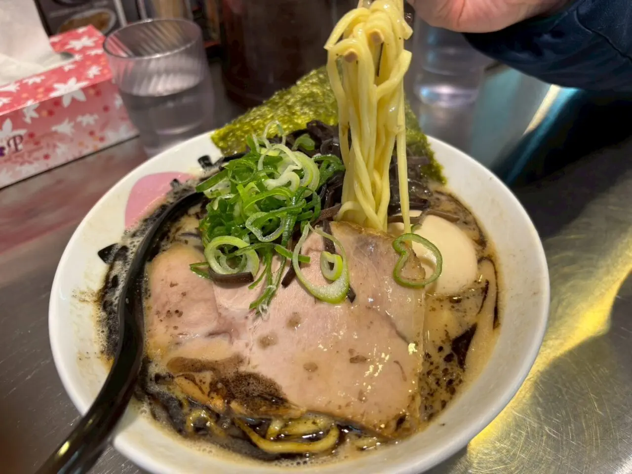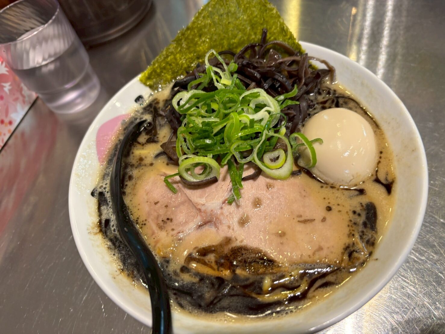 豚骨らーめん 黒(900円): 特製黒マー油を浮かべた、なんつッ亭のDNAを感じさせる原点の味。