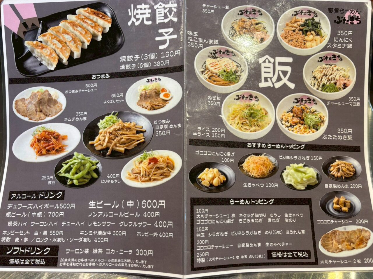 さらに、全粒粉入りの麺を使用した「濃厚豚骨つけ麺(1000円)」や、「焼餃子(3個190円〜)」、多彩な「ご飯もの(各350円)」など、サイドメニューも充実しています。