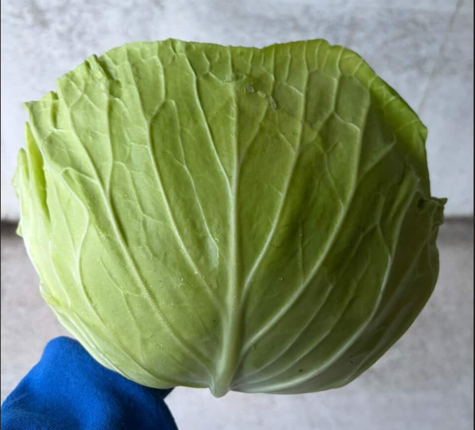 こんなに大きくて、美味しいキャベツ。一部変色してしまったキャベツですが、まったく問題なく、より甘くなってます。農家さんの畑から直接とどきましたよ〜。